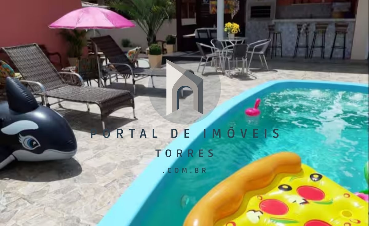 Uma casa a poucos metros do mar, a 10 minutos do centro de Torres, e com uma infraestrutura completa para você aproveitar com sua família e amigos, contém piscina aquecida com placas solares, área gourmet com banheiro, churrasqueira e forno a lenha, lareira externa, mezanino com mirante com vista para o mar e serra, com um pôr do sol incrível. Todos os ambientes da casa possuem ar condicionado, banheiro com chuveiro a gás, 3 vagas de garagem, sendo 2 cobertas. Insta: casadomirante360