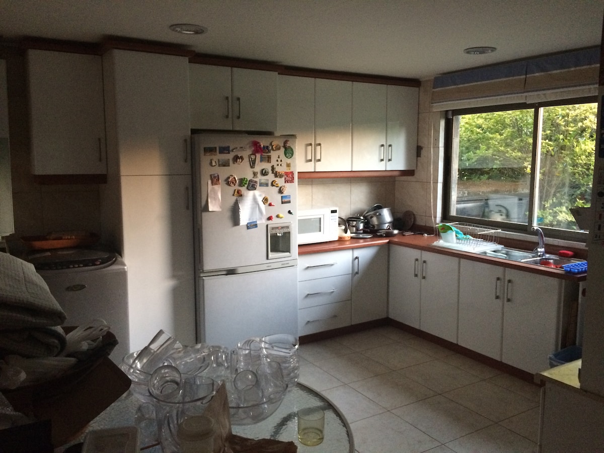 Bella, cómoda y amplia cabaña en barrio residencial, cerca de todo, muy tranquilo y seguro; ubicada en segundo piso con un cómodo living, cocina, baño, una habitación y terraza techada. Small cabin/apartment in second floor, fully equipped, very beautiful and modern with a nice, spacious balcony.
