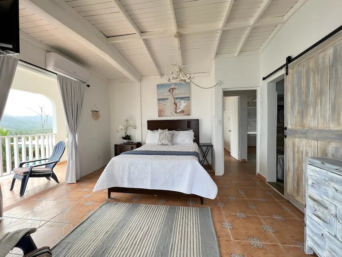 A Villa hidden in the mountains of Cayey. Furnished with exquisite taste to make short or long term stays unforgettable! One bed, equipped kitchen, family room with TV, relaxing areas and an amazing terrace with views that seem unreal. Just a short drive away from the famous “lechoneras” and amazing restaurants and hiking trails. This comfortable and unique property has 360 views that will blow your mind.