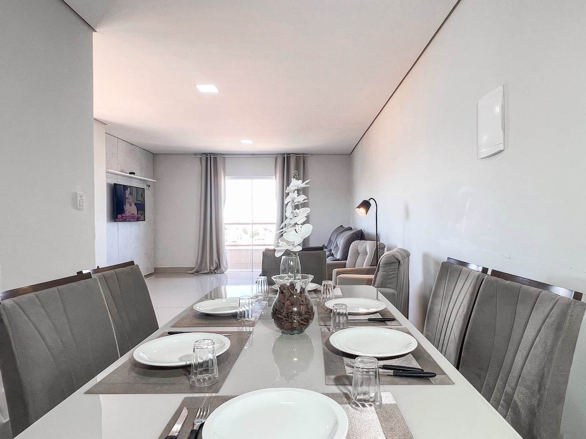 This special place is close to everything, making it easy to plan your visit. About the space: - Elevator; -Garage available; - Queen-sized bed; - EXTRA BED AVAILABLE (subject to extra fee); -Wi-Fi; -40" TV; -Fan and Humidifier; -Washing machine; -NEARBY: on foot, Major Gote, Supermarket, Restaurants and Pharmacy; five to ten minutes by car: Bus Station, Pátio Central Shopping Mall, Municipal Market, Exhibition Park, Unipam; PUBLIC TRANSPORTATION nearby.