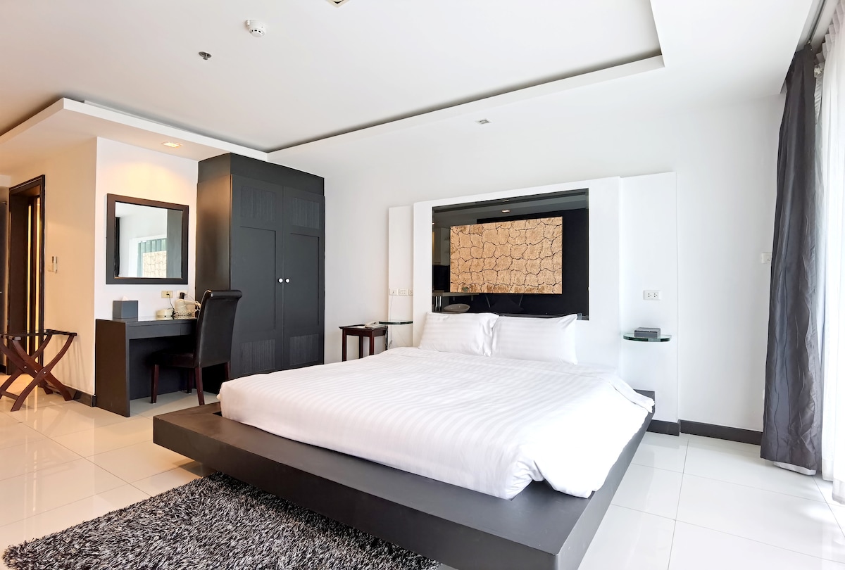 Suite, close to Walking Street and the beach, outdoor pool, 300m from the night market, 24-hour 711 supermarket and currency exchange at the entrance, motorcycle rental available.