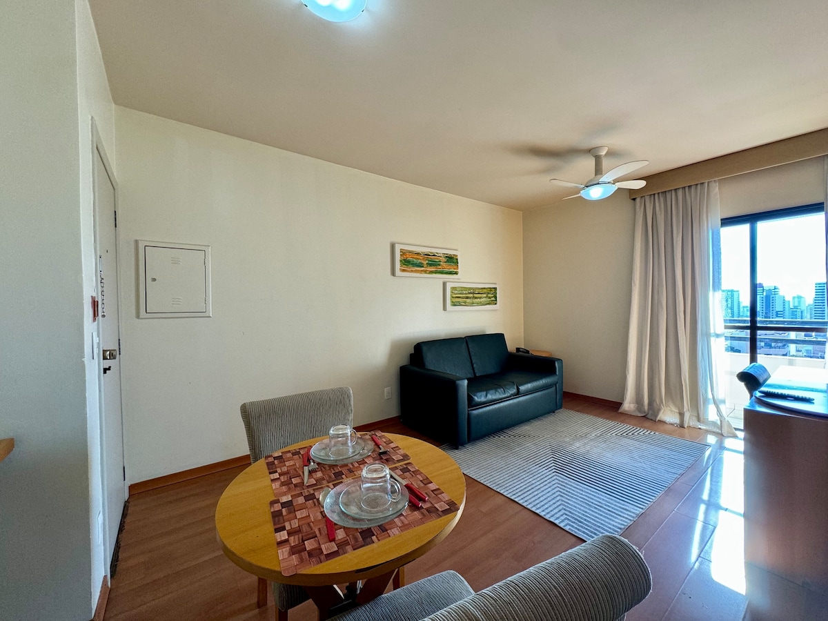Welcome to our Apartment, designed to offer comfort, practicality and tranquility during your stay. Strategic location: next to Av. Nações Unidas. Apartment structure: - Modern, clean and cozy environment. - High-speed Wi-Fi - Kitchen equipped for your meals. - Comfortable bedroom with double bed and air conditioning. - 02 Exclusive parking spaces. Differentials: Close to markets, restaurants, and essential services.