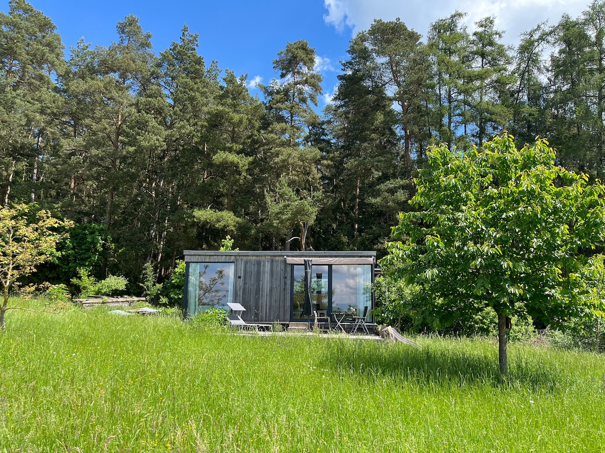 Hide away in the middle of nature 💫 - Off-grid tiny house in a secluded location with magnificent views Your time away from civilization! Cabin feeling (dry toilet, no running water, camping battery), deceleration and aesthetics. We combine the reduced life in nature in a self-built, simple hut in a unique location on the edge of the forest with modern design. We are not a professional hotel business. Insects are to be expected! Attention: be sure to follow the instructions for the equipment!