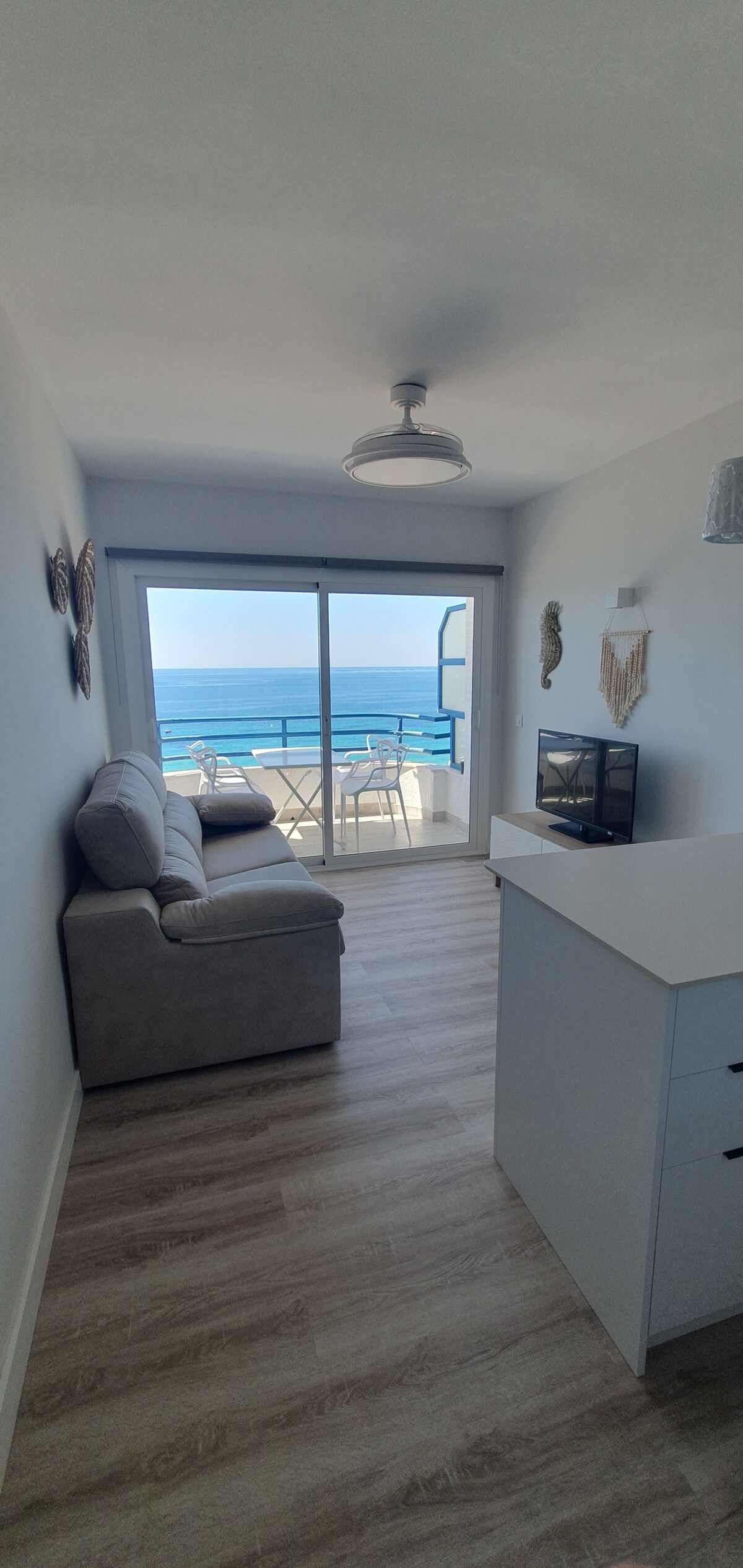 Holidays by the sea in Calpe! Newly refurbished one-bedroom apartment with stunning views of the Mediterranean Sea located in the immediate vicinity of the Peñon de Ifach Natural Park. Enjoy incredible sunrises from its large glazed terrace. The apartment has one bedroom, a bright living room with sofa bed, fully equipped kitchen, internet connection and access to all the amenities of the building, including swimming pool and garage.