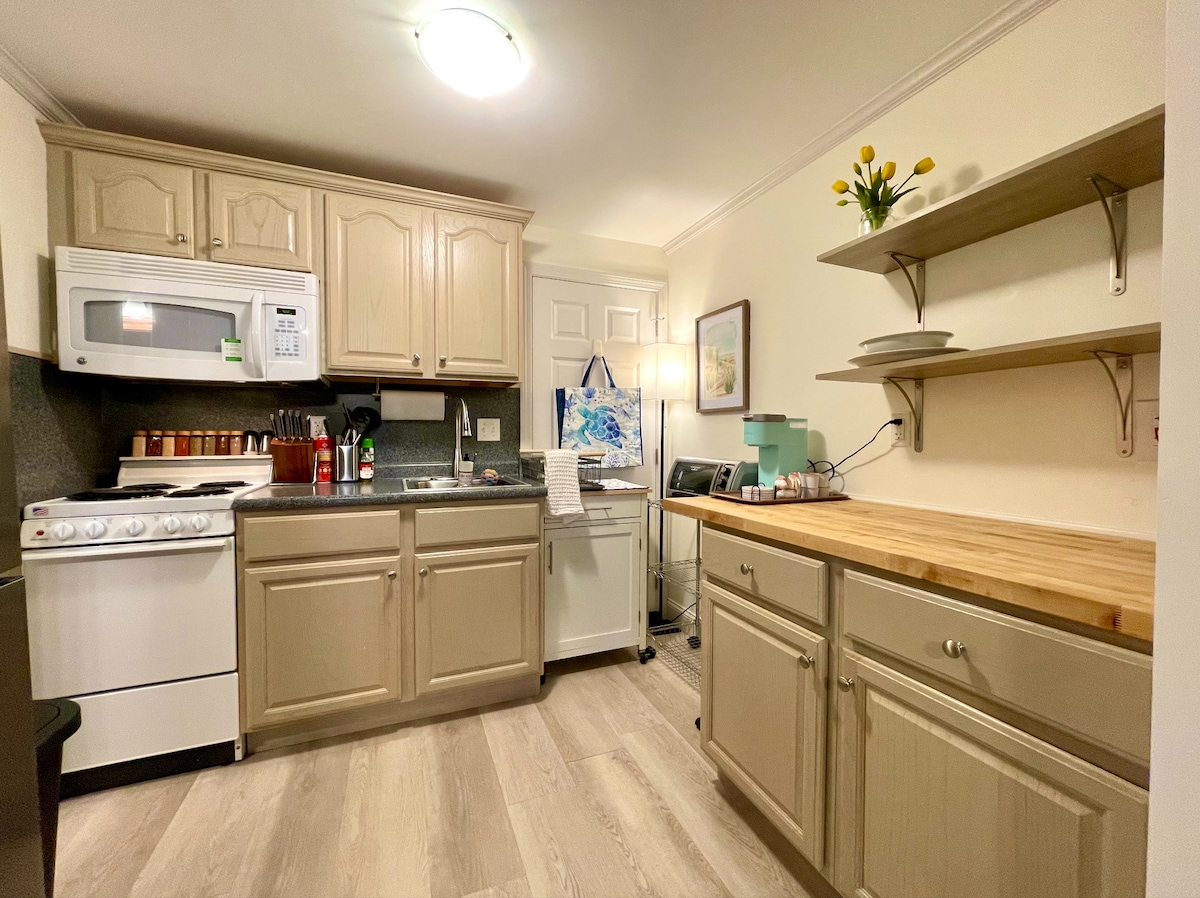 Spacious studio condo 5 minutes walk to Perkins Cove, Ocean, Marginal Way, trolley stop. Easy stroll to Ogunquit Center. Kitchenette with fridge, top burner, microwave, toaster oven, coffee maker. Has front patio, outside seating, gas grill, laundry, bicycle storage, one onsite parking space. Ideal for two but can accommodate four with queen size bed and sleeper sofa. Quiet, serene setting, but close to everything - beach, shops, restaurants, nightlife, galleries, museums.