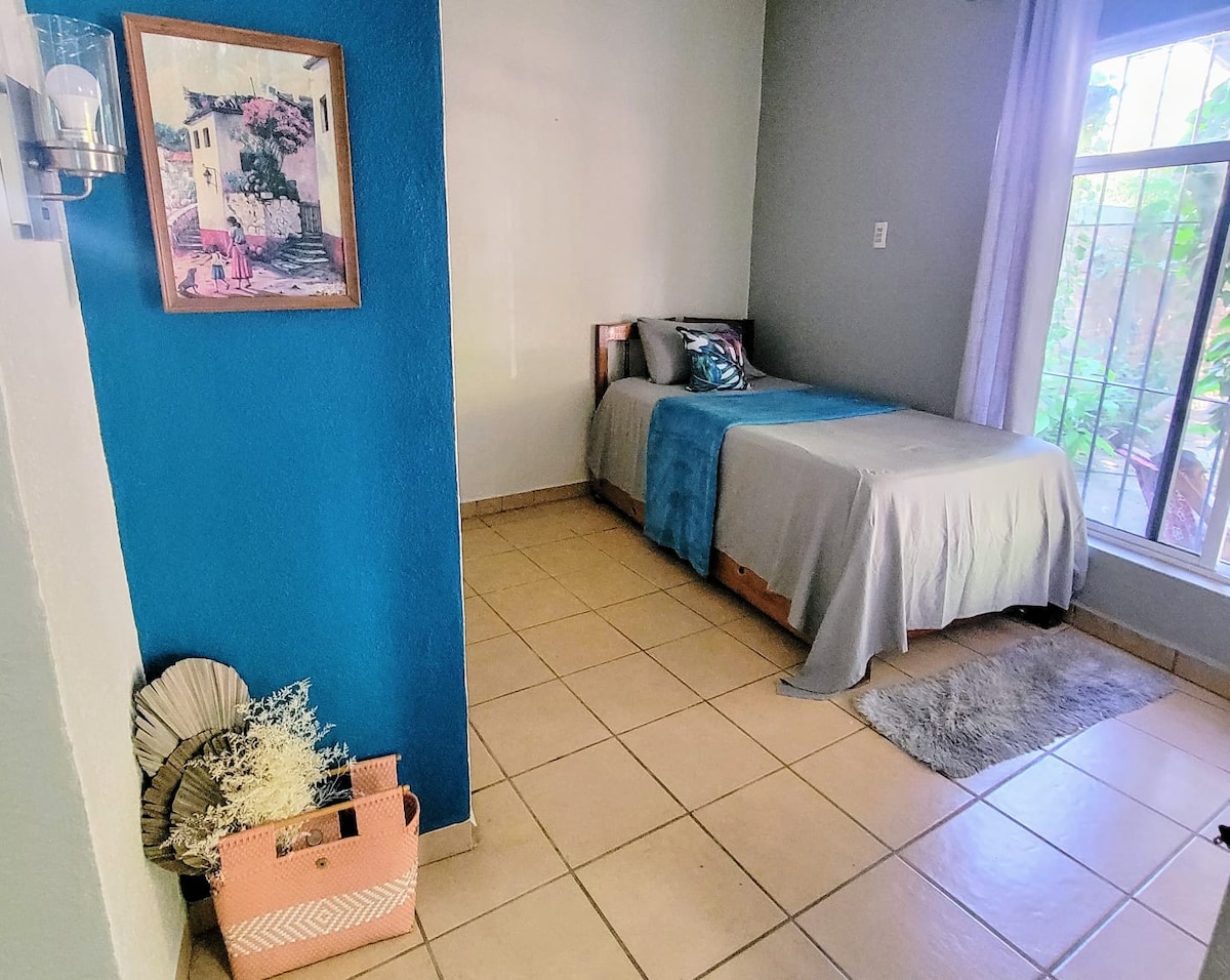 Entire house, two blocks from the beach, equipped kitchen, dining room, living room, 2 bedrooms located on the top floor, the master bedroom with private bathroom and king size bed, living room, 2 full bathrooms in common areas, patio and garage for 1 car. In the house's surroundings you'll find everything from a Japanese restaurant to a diner for having some delicious chilaquiles for breakfast. The supermarket is steps from the house, public transportation stops at the corner, and taxis are two blocks away.