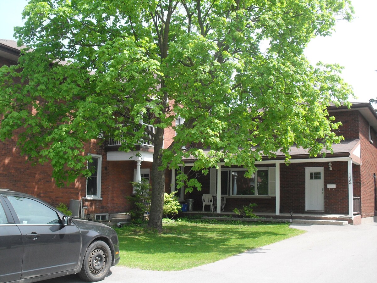 Lovely apartment in the "heritage district" of Peterborough. The perfect relaxing and cozy space for one or two people here for business or pleasure. In this self contained, lower level of our home, guests have a separate entrance, patio, full kitchen stocked with all the essentials, and access to the outdoor sauna for those cold days. You will feel right at home! Located just a 10-15 minute walk to downtown restaurants & entertainment, close to PRHC, and feet away from the bus route.
