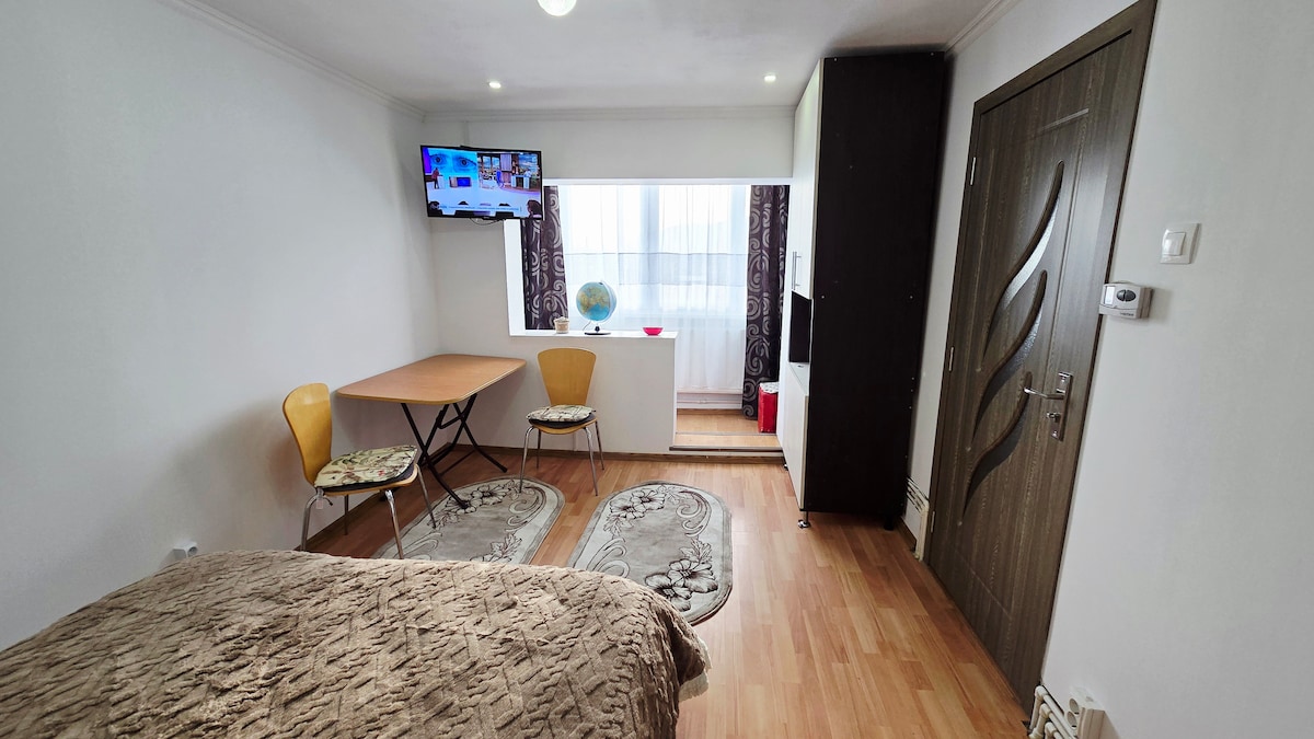 The 35 mp studio set in Petroşani, placed in a small mountain valley of Meridional Carpathians, Dream Apartment Petrosani offers self-catering accommodation with free WiFi. The unit is 10 km from Parâng Chairlift. Close to two other well known resorts: Straja (26km) and Transalpina (30km). Hunyadi Castle, also known as Corvin Castle (70km). There is a dining area and a kitchen in the same open space with the bed and sofa, a flat-screen TV is featured and a private bathroom with a bath.