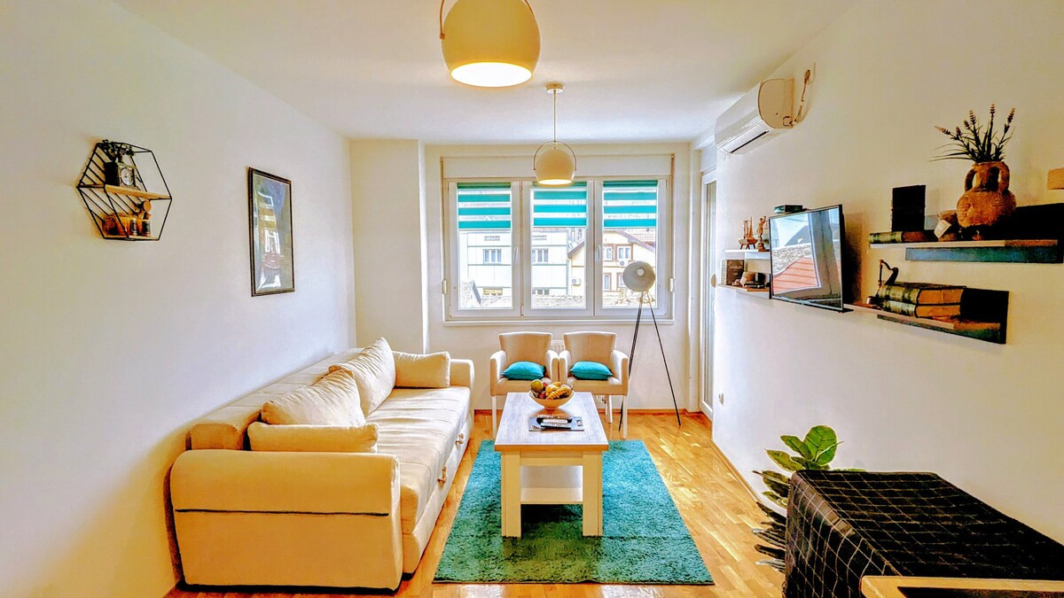 ★ Ace locaton for perfect vacation or business trip! Ideal for 2-4 people. Excellent free Wifi! Modern home, carefully designed by an architect, situated in the heart of Old Town, less than 5min walk (650m) from the City Centre. Bright 50sqm flat with one bedroom, fully equiped brand new kitchen and spacious living and working area with AC, designed to create warm and relaxing amosphere. All city attractions, best restaurants & bars within 5-10min walk. Taste and enjoy the real Novi Sad!