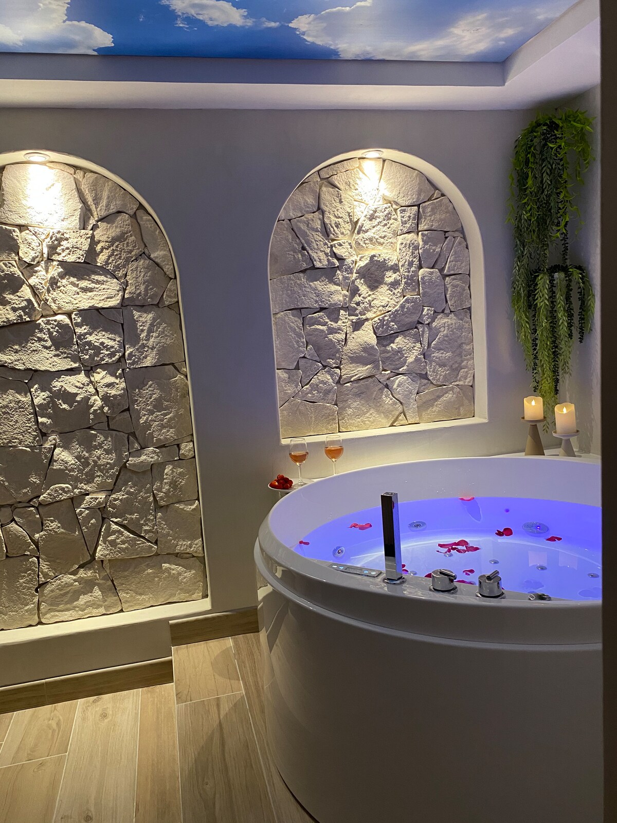 Come and spend a romantic weekend in our glamorous and romantic cottage filled with charm with exposed stone, escape discreetly for a romantic night and sensuality will make time disappear The apartment is equipped with a private jacuzzi and a naughty room to relax you and so that your weekend rhymes with even more well-being, enjoy a small zen exterior that accompanies the suite.