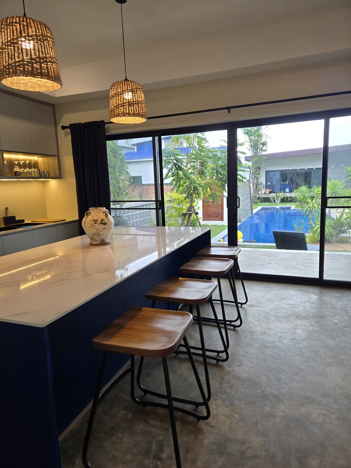 Bovin's Villa is the Luxe and modernity combined, located in Siem Reap paddy field with 3 large bedrooms, and 2 bathrooms, it’s the best place to rest in Siem Reap This private house of 280 sq/m is set on over 1000 sq/m land, has its saltwater pool, a boule games, kids swing, and large tropical garden with fruit trees that you may enjoy during their season, it is very peaceful, a perfect place to relax your mind, body & soul while having fun or stay active while cycling or jogging around fields