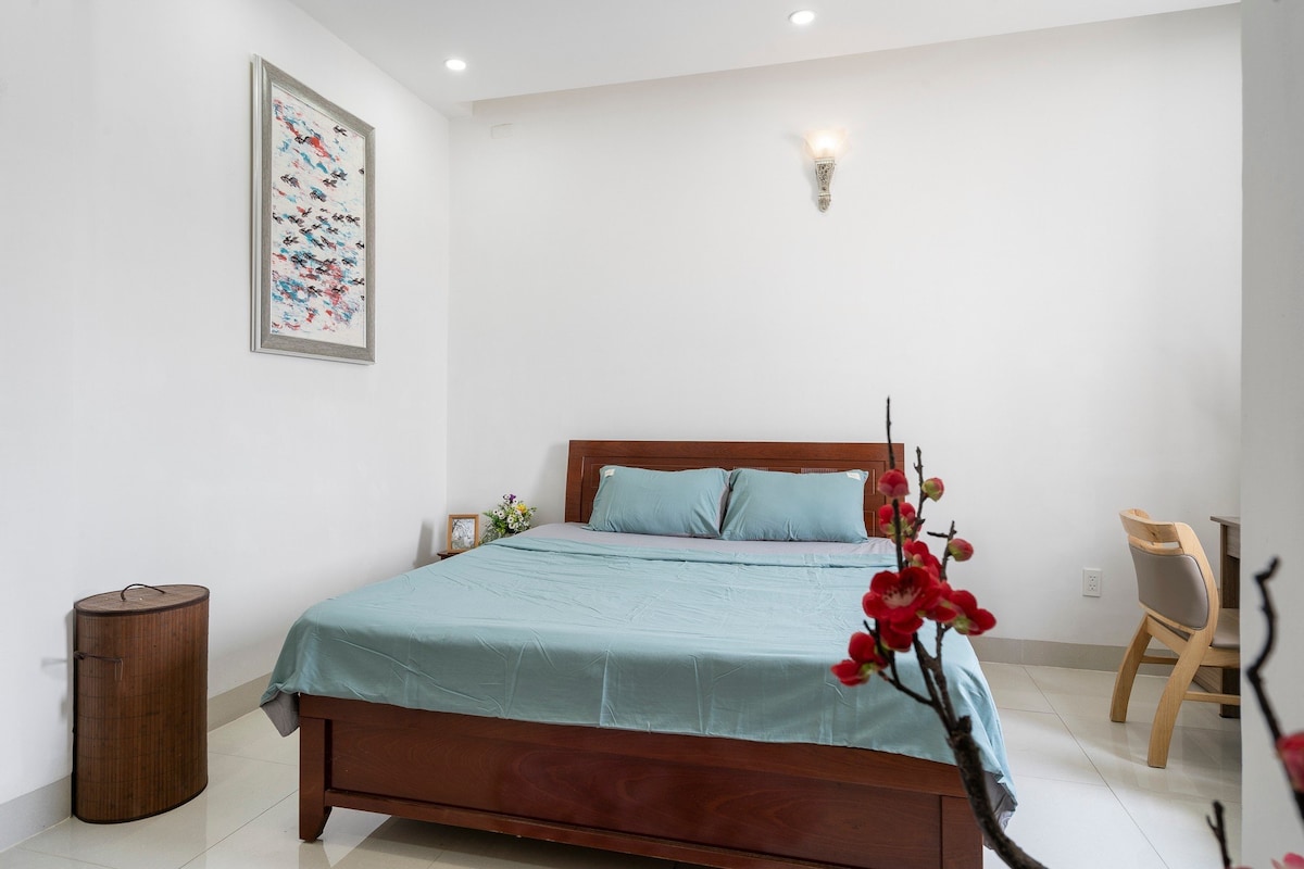 🌿🌺 Bright Duplex with Bathtub & Private Garden 🌿Your quiet oasis in the heart of HCM city! This rare two-levels apartment features high ceiling, a private backyard garden🪴, bathtub🛀, and a fully equipped kitchen. 😊 Enjoy spacious bedroom with a plush king-size bed, cozy living room, home comforts in a peaceful green setting. ☕Tucked in a local friendly neighborhood, we're close to marts, cafes, eateries, bus stop and a short walk to Dam Sen Park. Check my guidebook for interesting spots
