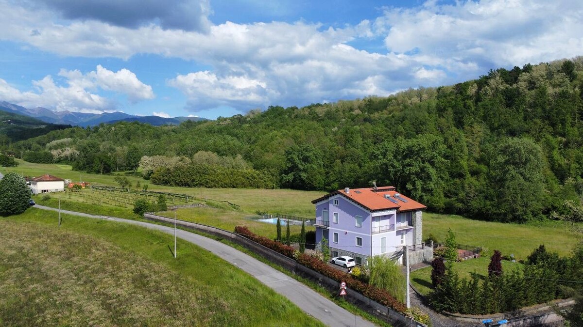 1 min drive from Aulla station (3 min walk) 1 km from the highway exit. Minimum booking 2 nights The 250 sqm Residence located on a vineyard estate with fruit trees and olive trees, stands on a small hill overlooking the Apuan Alps, surrounded by a private estate with garden and hot tub for 6 people and a barbecue on wheels. The house is equipped with Wi-Fi and air conditioning. Beautiful view. Parking on the property along the driveway and outside.