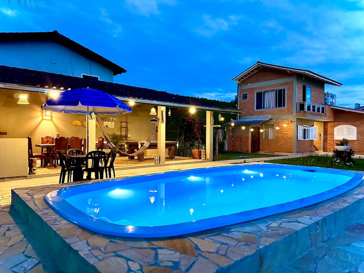 Our guests will love staying at our house, it is spacious and very comfortable, with air-conditioning in all the bedrooms. The party area has a barbecue, refrigerator, gas stove, wood stove and solar-heated pool. The garage is for up to 4 cars without a parking charge. The house is 100 meters from Alegre Beach and 7 km from the largest theme park in South America, Beto Carrero World. We have free Wi-Fi for guests.