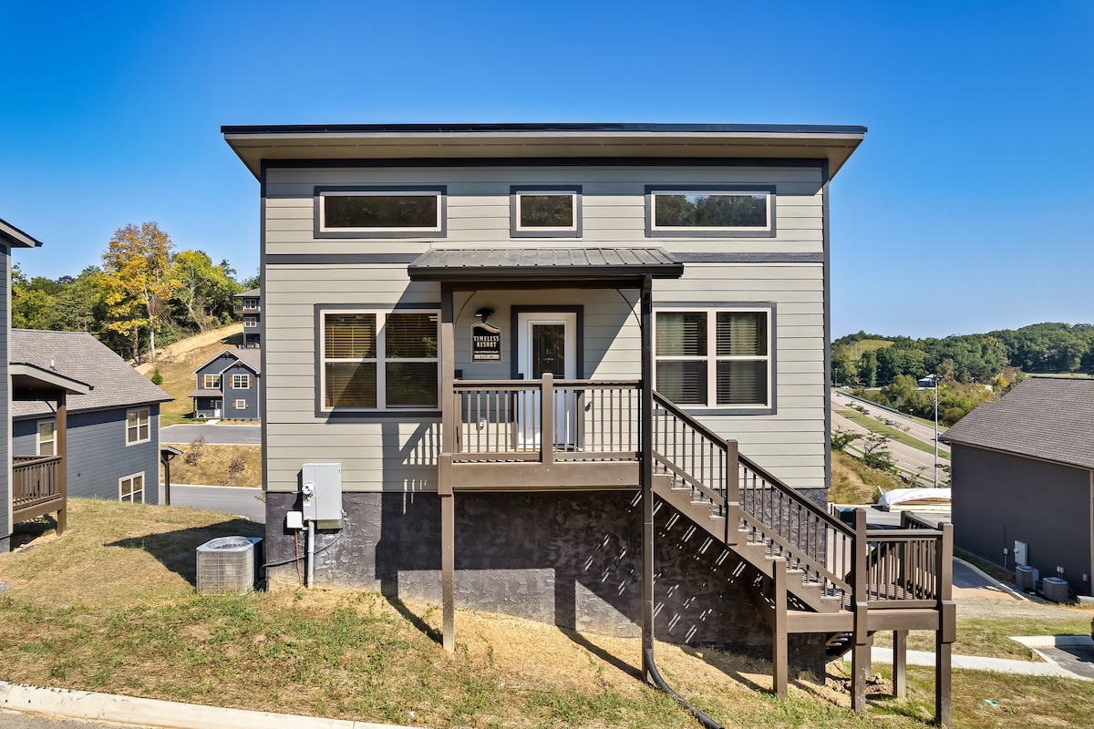 Welcome to StellaLuna A-Frame! A custom-built modern A-frame cabin, just 15 minutes from Gatlinburg and Pigeon Forge, and right outside the Great Smoky Mountains National Park. This brand-new A-Frame offers a luxurious experience with moody, stylish bathrooms and A+ craftsmanship throughout. Enjoy the wrap-around deck, hot tub, games, and music for good vibes. Relax in the elegant outdoor seating area or listen to music on our vinyl record player. Perfect for a unique getaway surrounded by