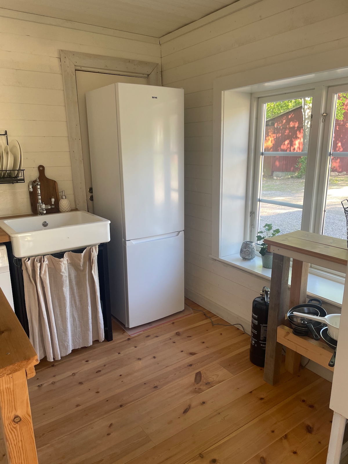 Charming little cottage that is newly renovated to a high standard. 1200 meters from the train station and 300 meters from green area with exercise loop. The bedroom has A/C, a 140 cm bed, TV and WiFi. Fully-equipped kitchen with induction, microwave, oven and floor heating. The bathroom has a washing machine with built-in dryer, toilet, sink and shower and underfloor heating. The house is pet-free and smoke-free.