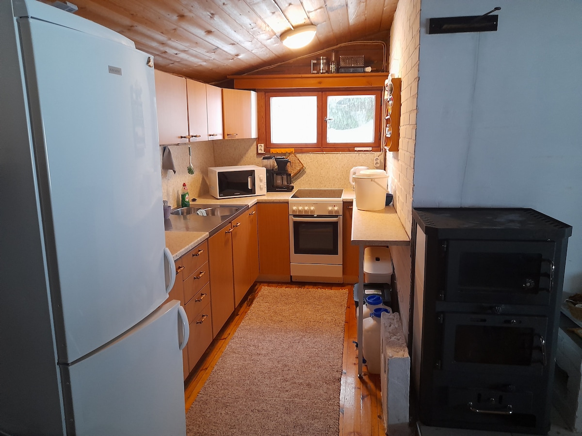 Electrified cottage with a good lake view. Large terrace, summer kitchen, outdoor sauna, fire pit (by agreement), several campfire sites, gas stove, gas grill, refrigerator and a small freezer compartment. Space for a group of 6 people. There is a rowing boat with an electric motor. Running water from the lake. (There is drinking water in a canister in the cottage.) The sauna has electric travel showers. Fishing in the lake and small game hunting (by agreement) is possible. For long-term guests, laundry service is available.