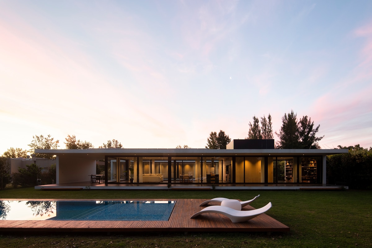 Designer, unique and quiet accommodation. You'll be able to relax in our garden with a beautiful pool, and contemplate it from the living room or the gallery. Prepare your favorite meals in a super kitchen or play or watch TV in a nice playroom. Located in the exclusive Golfers neighborhood, where you'll find the best groves and the perfect combination of tranquility and sports: tennis, paddle tennis, golf, polo, soccer, and much more!