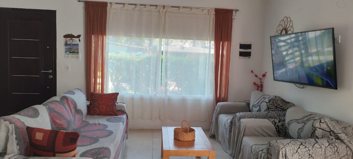 🏡 Casa nueva para 4 personas, planta alta, a solo 300 m de la playa y 7 cuadras del centro de Pinamar. Rodeada de servicios como supermercado, kiosco y farmacia. ✅ Cuenta con 1 dormitorios (cama matrimonial) y un diván cama en el living ( 2 camas individuales). Cocina totalmente equipada, patio con jardín, galería techada con parrilla, WiFi, DirecTV, aire acondicionado y cochera descubierta. Ideal para descansar y disfrutar en familia dentro de Complejo Tercer Tiempo. SOLO FAMILIAS ⚠️