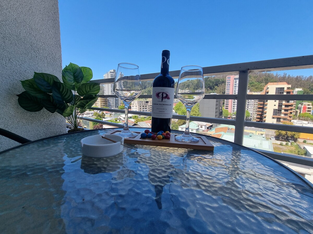 Excellent apartment with a beautiful view of Laguna Tres Pascualas, across from Universidad San Sebastián and steps away from downtown Concepción. Fully equipped with a double bed, Smart TV, Wi-Fi, desk, and a sofa bed in the living room, accommodating up to 3 people. Kitchenette with oven, burners, dishes, cooking utensils, kettle. Bathroom with all its equipment incorporated (towels, soap, shampoo).