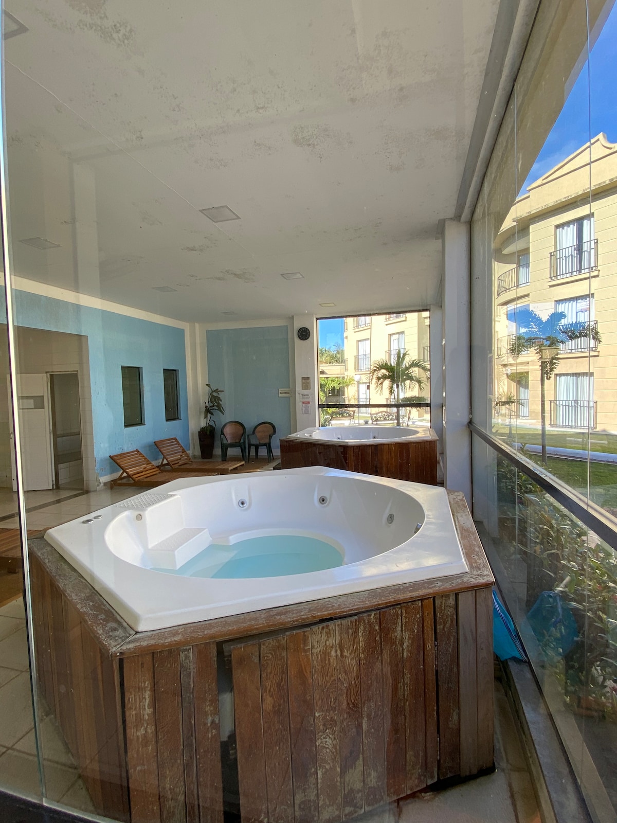 Relaxe com toda a família em um flat térreo de frente p piscina em um apart hotel no parque aquático aldeia das águas, recreação para as crianças, sauna,hidromassagem,academia,sala de jogos , estacionamento gratuito.venha conferir. Quarto com cama king, com varanda e vista para piscina ,guarda-roupa, televisão e ar condicionado. Na sala temos sofá cama, televisão e sacada de frente para piscina. Cozinha bem equipada com eletrodomésticos. ingressos à parte, direto com o parque!!