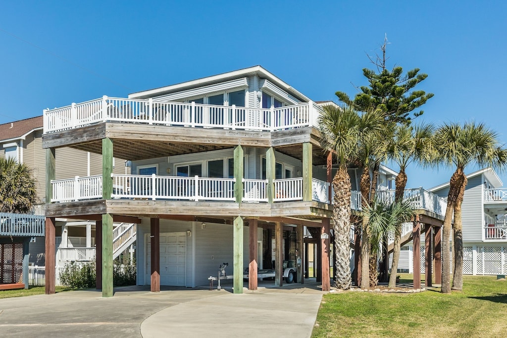 Enjoy this newly renovated beachfront family friendly home in Palm Beach. This 3 bedroom, 3 bath open concept professionally designed vacation rental offers unobstructed views of the beach with plenty of space for your loved ones. Multiple areas for outdoor entertaining including the expansive area underneath the house with amazing beach views! Easy access to the beach and only a short drive to Galveston Island attractions.