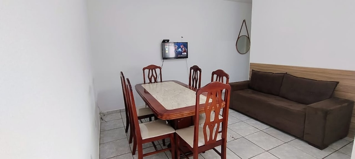Stay in a cozy property with a private entrance and private environment, garage (for small and medium-sized cars). Private environment, with air conditioning. If necessary, we can set up an extra bed, just select 3 people, and the fee is already included. Privileged location: 2 blocks from a hypermarket 2 blocks from two famous bakeries 1 block from 3 pizzerias 2 minutes from downtown 5 blocks from Habib's and McDonald's 5 minutes (by car) from USP and CPO, SENAI, Centrinho.