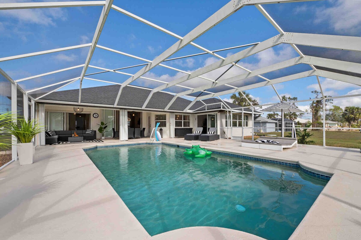 This beautiful remodeled home is the perfect getaway for families with children or couples. For the golf enthusiasts, the house includes a putting green and nearby golf courses..It's located minutes from beautiful Englewood beach and several delicious restaurants. You’ll enjoy the heated saltwater pool and gas firepit or have a cookout on the grill while watching a movie on the large outdoor TV. You will always remember your exceptional stay here and want to return.