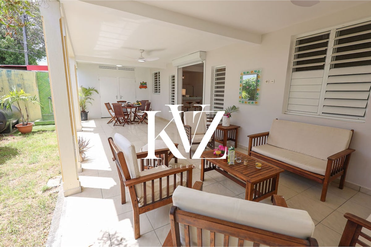 Studio « Mahana ☀️ » Situé en plein cœur de la station balnéaire de St-Francois, à deux minutes à pieds de la marina, localisation exceptionnel pour profiter de vos vacances. Le studio est très cosy et bien aménagé, il allie calme, confort et proximité avec tous les commerces. La résidence dispose d’une piscine Le studio est entièrement équipé et le linge de maison est fourni ; serviettes de toilettes, draps etc… wifi, télévision, Climatisation, sèche cheveux. Ti- punch offert a l’arrivée.