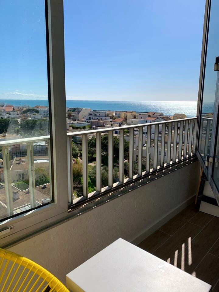 Beautiful first-row apartment with sea view in Carnon