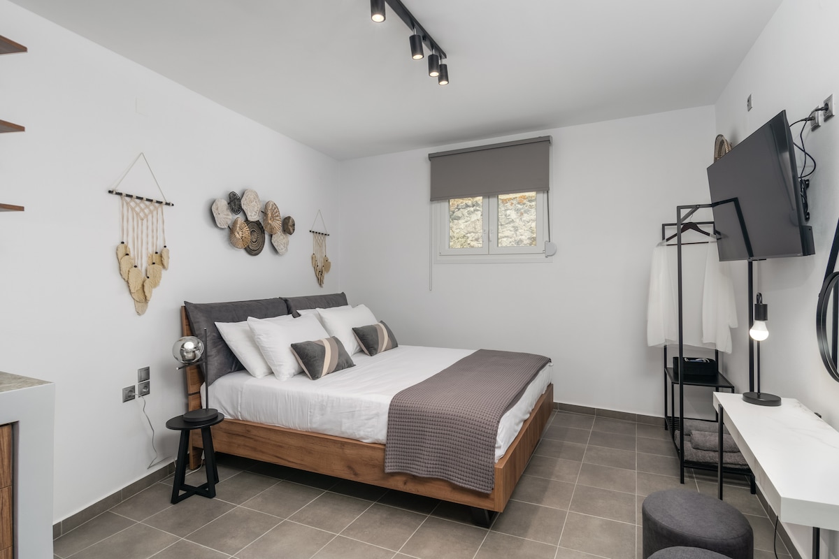 Sunset Studio is located at Plaka, probably the most picturesque place on Milos, which used to be the old capital of the island. It has one bedroom with a double and a single bed, a kitchen and a bathroom. Right outside, in front of your door, you can enjoy a magnificent sunset and in just two minutes you can find yourself in the middle of Plaka with its traditional alleys, the beautiful restaurants, cafes and shops.