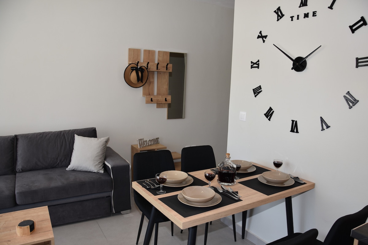 Located in the city center, this 35 sq.m luxury studio, is ideal for relaxing vacation or weekend break. Placed just a few minutes from the main market, main square and the biggest beach it can offer you peace of mind and the opportunity to forget your car or use it only for the city surroundings. Στο κέντρο της πόλης παρέχει εύκολη πρόσβαση με τα πόδια στην αγορά και στις βασικές παραλίες.