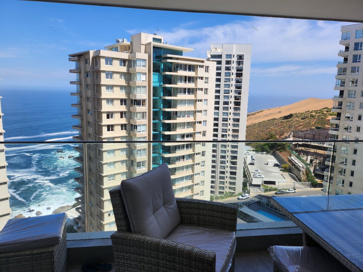 ✨ Escápate a una noche mágica frente al mar ✨ Comparte con tu pareja, amigos o familia en una terraza privada en el piso 20, con vista directa al océano y atardeceres que quitan el aliento. Este departamento nuevo ofrece una experiencia única: incluso al dormir sentirás la calma de las olas. Ideal para desconectarse, celebrar momentos especiales o simplemente vivir un descanso romántico junto al mar. 🌊🌅 Incluye estacionamiento privado.