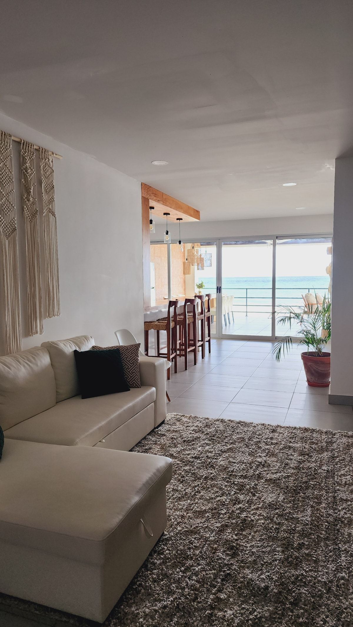 Relax with the whole family at this peaceful place to stay. 24-hour security. Private beach loft with a full kitchen ideal for long stays. The first room is open. The second room is a small one with a fold-out bed and its door slides through the front door if you want to use it. There is also a sofa bed in the living room. Internet and cable service. Please note that the maximum number of people allowed is 4, children under 2 years old do not count. (Please bring your own water)