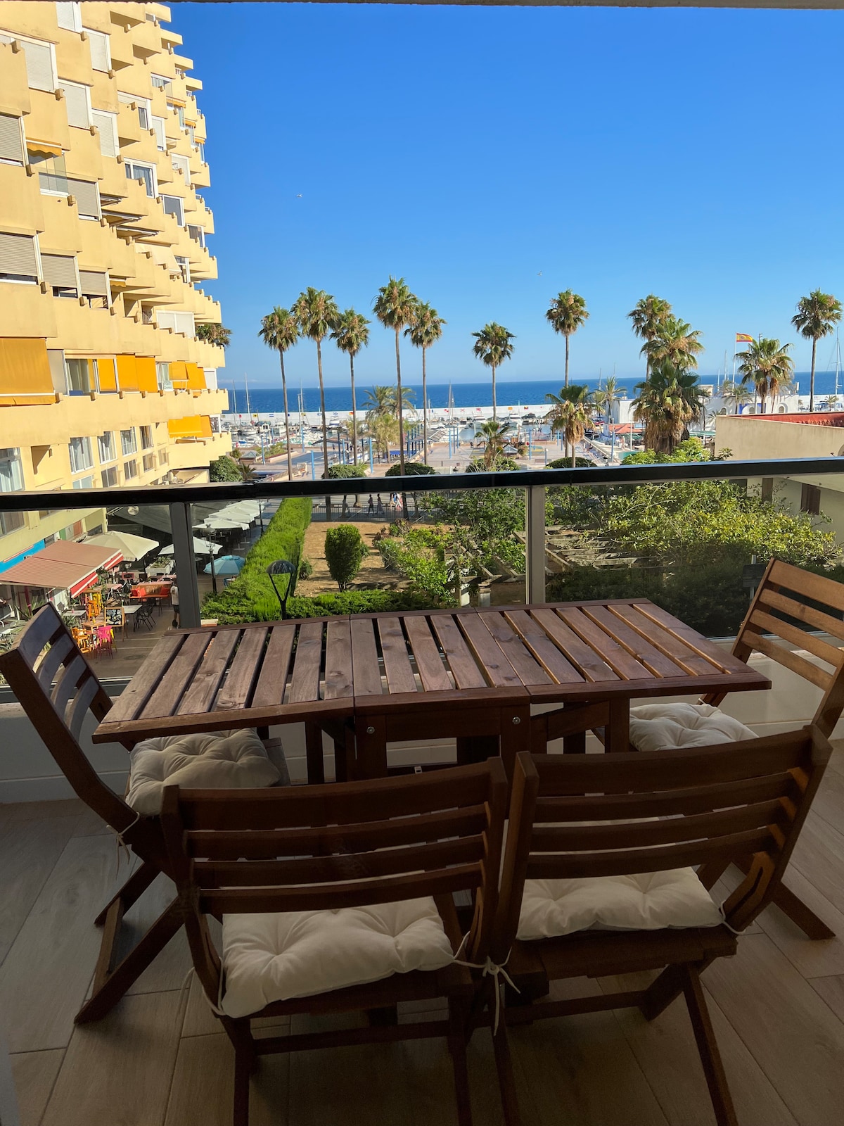 Appartment with terrace and sea views, located on the beachfront in the center of Marbella. Located in the Mediterraneo building, with access to the promenade and the beach, as well as within walking distance to the old town. Newly renovated with modern decor, has a double bed and sofa, perfect for a few days of rest. Bathroom with shower and equipped kitchen. Terrace with chill-out area overlooking the sea. Close to leisure areas, as well as stores and supermarkets.