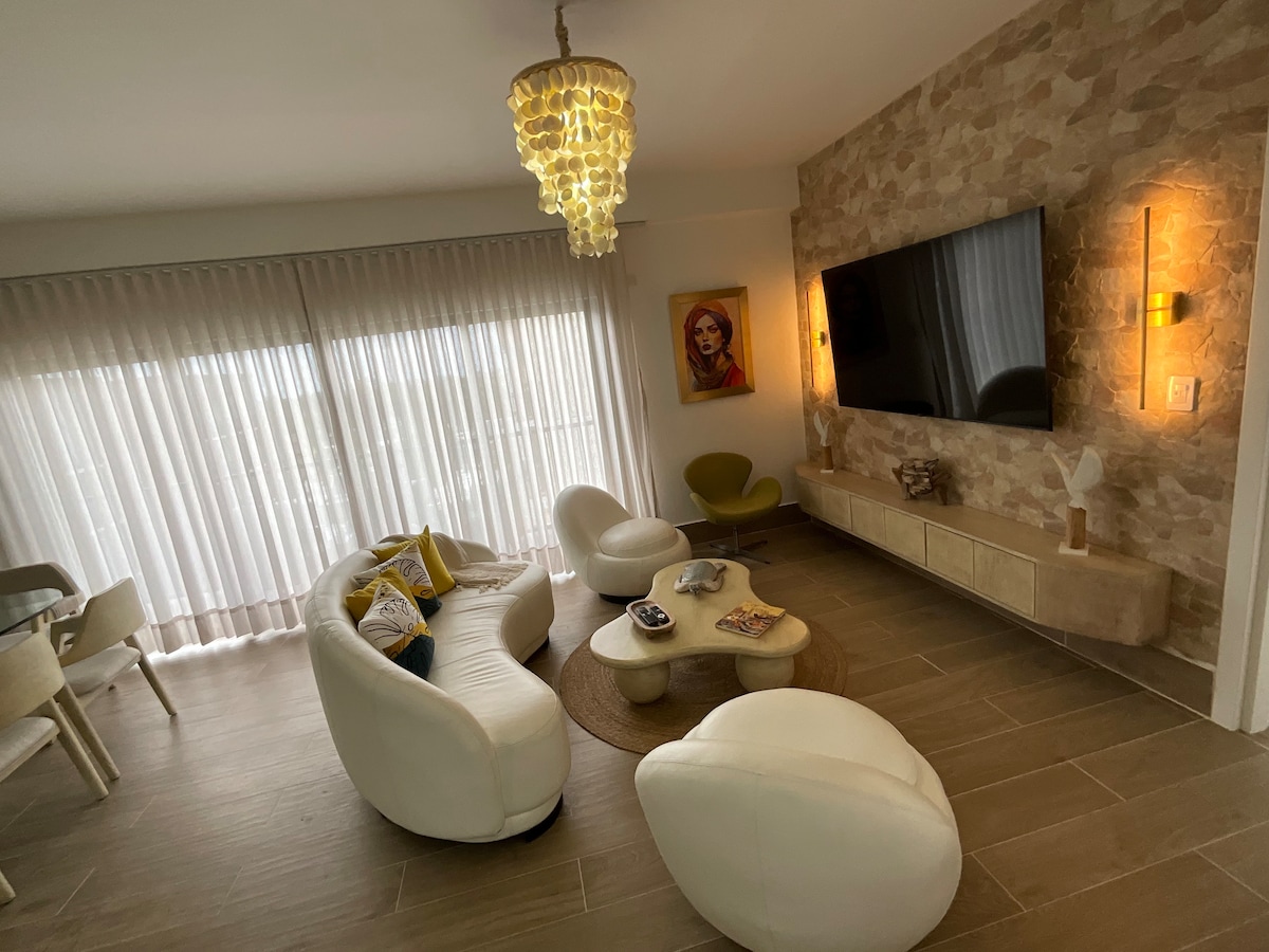 Forget your worries in this spacious and serene space. A beautiful 2 Bedroom Condo on the 2nd floor brand new. Gated community with security. Property Access Fee: To enter the property, each guest must purchase an access bracelet at the entrance. The fee is RD$300 Dominican Pesos per person, payable in cash only. This fee is required by the property administration and is not collected by the host.