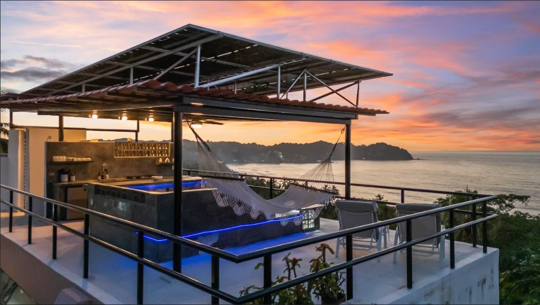 Romantic studio with panoramic ocean views in the tranquil north end of Sayulita a few blocks uphill from the beach. *Brand new, completed December 2022! *High speed wifi via Sayulitawifi *42" Smart TV *Air con, ceiling fans *Kitchen: stove, oven, microwave, blender, coffeemaker, all utensils *Breathtaking panoramic views *Queen bed, pillowtop mattress *Exterior double size sofa bed *Parking for 1 vehicle *Bathtub *Common area pool, grill