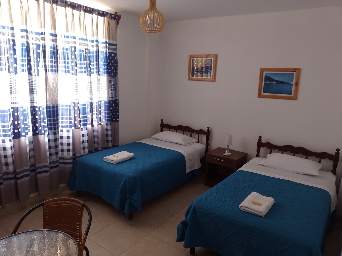 Enjoy breathtaking ocean views from each room’s balcony or the main terrace. Each room, located on the second floor, is equipped with a private bathroom, a mini-fridge, and WiFi for your convenience. There's a fully equipped kitchen and grill outside. On-site parking and a beautiful swimming pool. The beach is just a 4-minute walk away. This property is perfect for relaxation and gatherings with your loved ones.