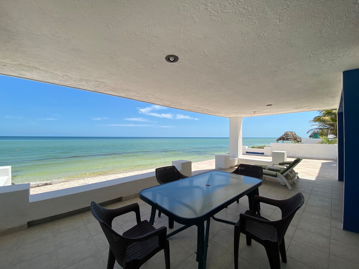 Enjoy this beautiful beachfront home with a family-friendly atmosphere that comfortably accommodates up to 10 people in 4 bedrooms where the sound of the ocean and the sea breeze will welcome you. We are located in Chicxulub, the most beautiful and safest beach in the Yucatan Riviera due to its shallow waters. Unforgettable memories in this unique, family-friendly home. The house is two stories, two bedrooms on the ground floor, making it very comfortable for the whole family.