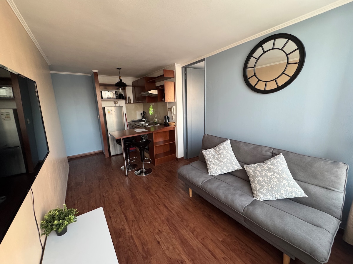 A cozy apartment, fully furnished and equipped within an elegant and modern building located in the historic center of Santiago, which will make you feel at home. It is located in a prime location in the heart of Santiago's historic center on a quiet street. Steps away from the main tourist attractions, supermarkets, restaurants, shops, and services with great connections to Metro lines and highways. Kick back and relax in this calm, stylish space.
