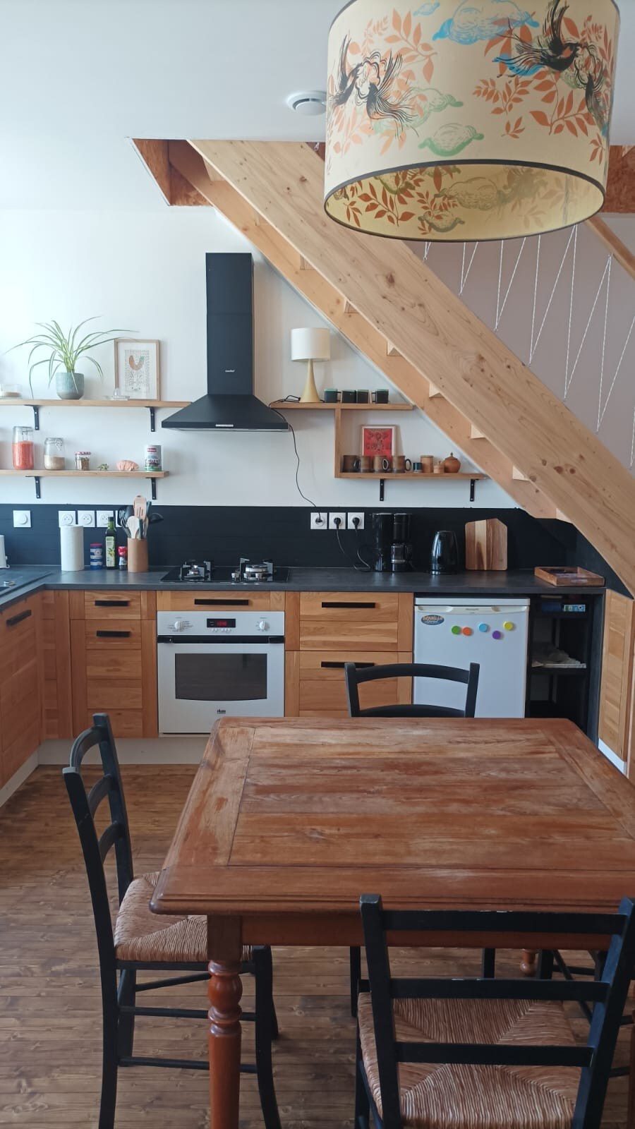 Relax in this fully privatized 4-person accommodation in Belle-Isle-Bégard, 5 minutes from all amenities, 5 minutes from the 4-lane road, 25 minutes from the sea. New and elegant, equipped with a queen size bed, sofa convertible into a 140x190 bed, large bathroom with walk-in shower, washer/dryer, toilet and a kitchen equipped with dishwasher. Garden furniture with barbecue available. BEWARE, the stairs are quite steep which can be disturbing