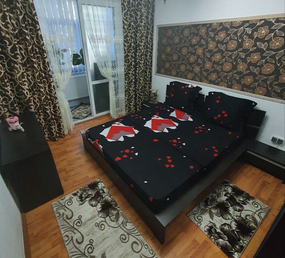 Bine ați venit în apartamentul nostru elegant, situat în inima orașului, unde stilul sofisticat se întâlnește cu funcționalitatea de top. Acest apartament este conceput pentru a oferi oaspeților o experiență de neegalat, punând la dispoziție materiale premium și facilități moderne. Bucurați-vă de o experiență deosebită într-un apartament care combină eleganța cu confortul modern, într-o locație ideală pentru a explora tot ceea ce orașul are de oferit.