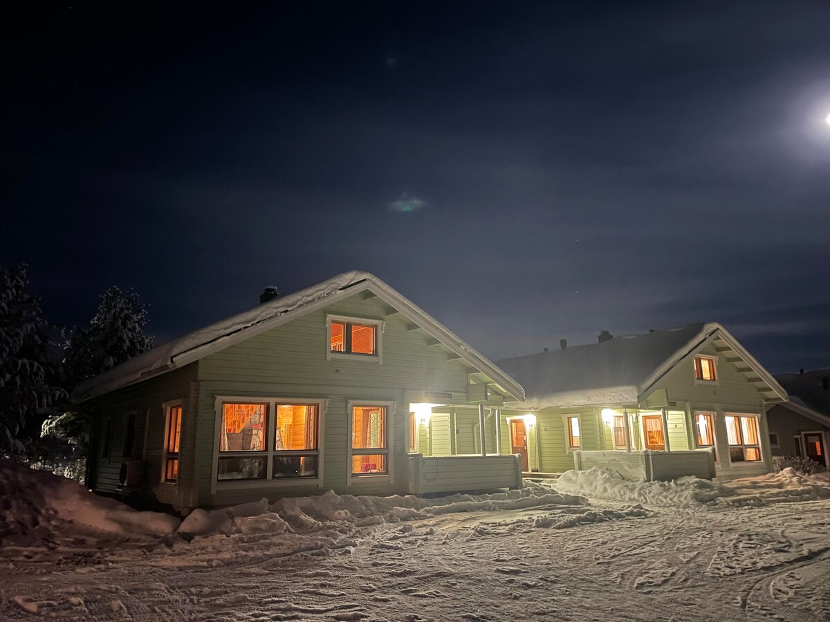 Unique vacation villa near Himos slopes with a view of the northern slope. 5 minutes by car to the slope. Well-maintained winter trails pass by the villa, with multiple pairs of snowshoes free to use. Outdoor hot tub (jacuzzi) can be rented for 160€/stay. Note: If you want bed linens and towels, they can be rented separately for 20 euros per person. This is a common practice for holiday cottages in Finland.