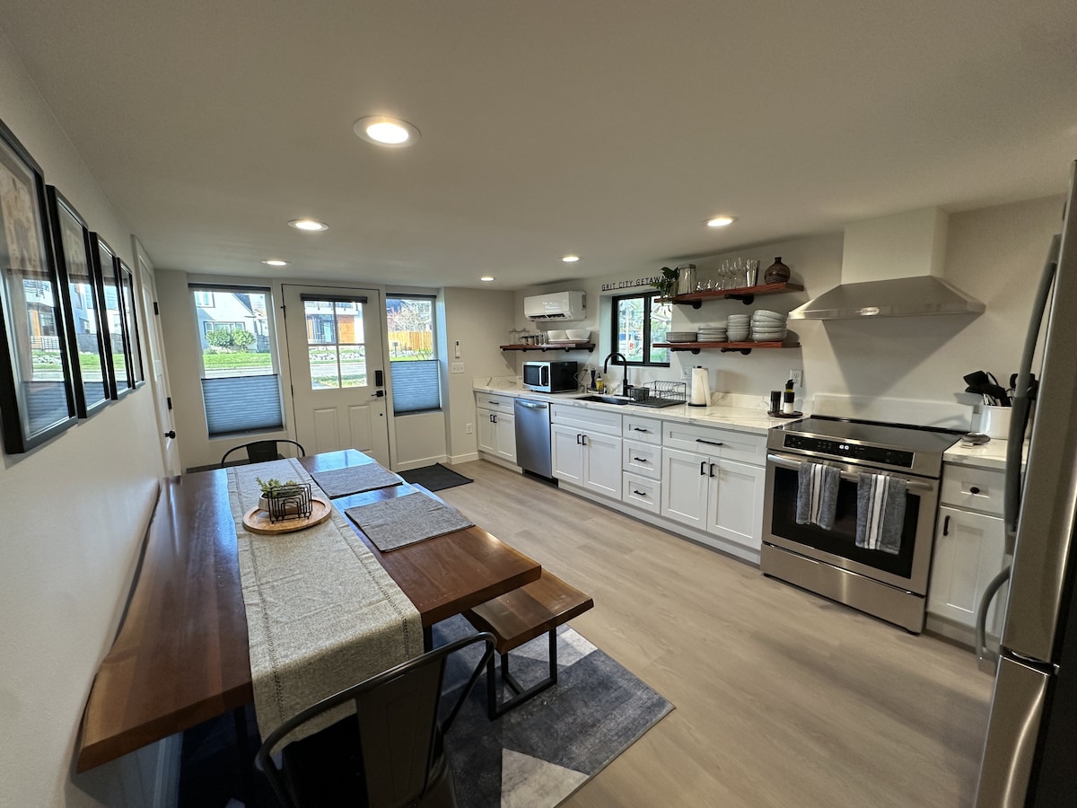 Designed to meet all your needs and put your mind at ease, the South Sound Suite offers a relaxing stay just up from the waterfront in Tacoma. This studio is brand new featuring a king bed, kitchen, and loft! Cozy up and stay in or explore. Just a 8 min walk to our neighborhood delightful market and a 15 min walk away is the Pt. Ruston waterfront, a lively, family-friendly destination featuring shopping, entertainment, an indoor public market open daily with local vendors, and dining.