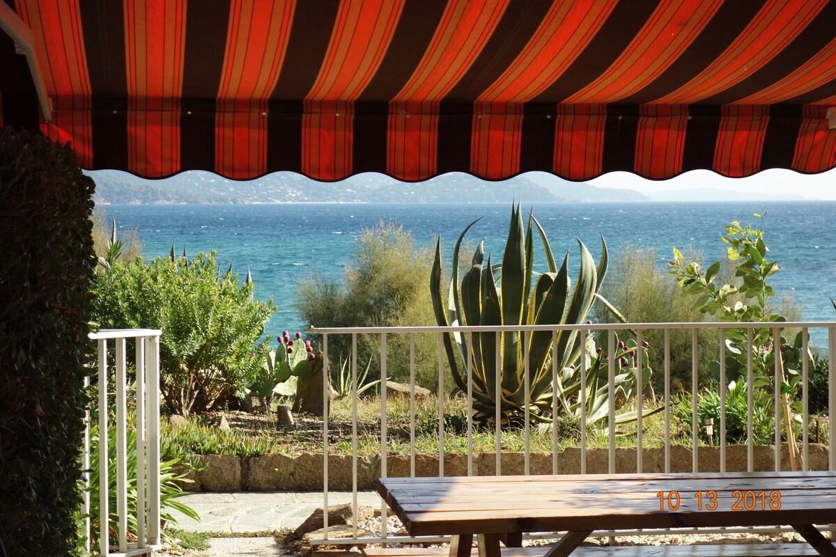 Amazing SEAFRONT apartment. Just a stroll across the garden to the sandy beaches. Airconditioned, 30m2 terrasse, 2 good sized bedrooms, separate kitchen and separate bathroom and toilet, private parking. Enjoy a game of pétanque in the garden, restaurants galore, the market just 200m away, a 5 minute stroll to Le Lavandou center. The beautiful Îles are a short boat ride away, rentals for bikes, boats and paddles abound. MINIMUM STAY 7 DAYS.