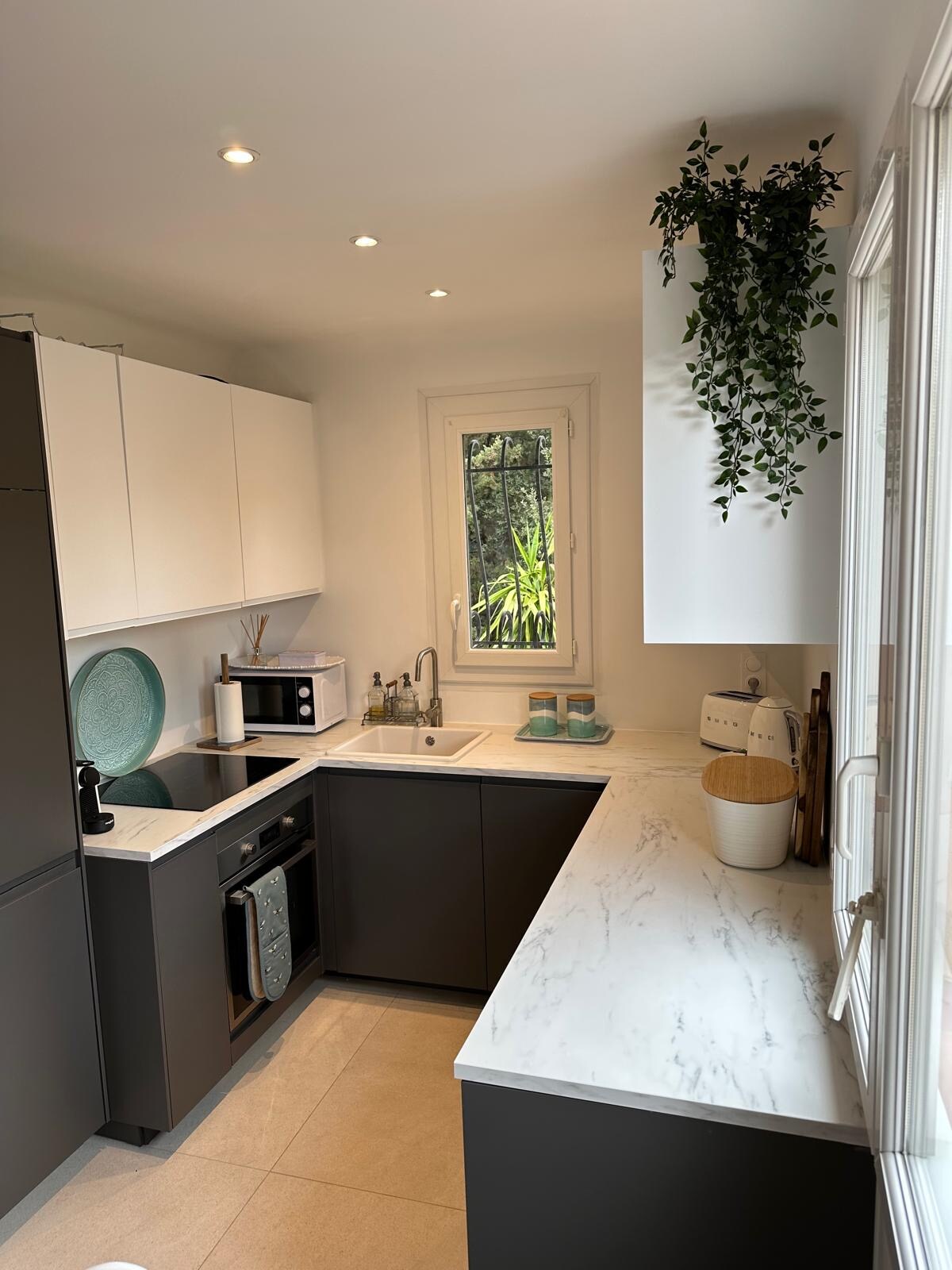 Relax in this beautiful area of Le Lavandou in 1 of our Apartments. Originally 1 house split into 2 it’s great accommodation for 2 families together or just alone in 1 apartment. This 1st floor apartment is the larger of the 2 with a terrace, garden area, separate parking and entrance. It comprises of lounge/dining area with open plan kitchen. 2 double bedrooms with bedroom 2 split into 2 singles or a double. 1 shower room with 🚾 and separate 🚾 with sink. The beach is a 7 minute walk away.