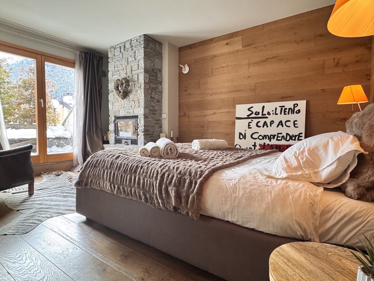 Prestigious property: the ideal solution for unforgettable family holidays. This splendid accommodation, carefully furnished with attention to every detail, seamlessly combines modern style with alpine elegance. The warmth of wood harmonizes perfectly with the cool tones of steel and the shades of gray, creating a welcoming atmosphere rich in style and taste. The apartment features a spacious living area with a fireplace, Smart TV, and a sofa bed that can accommodate two guests.