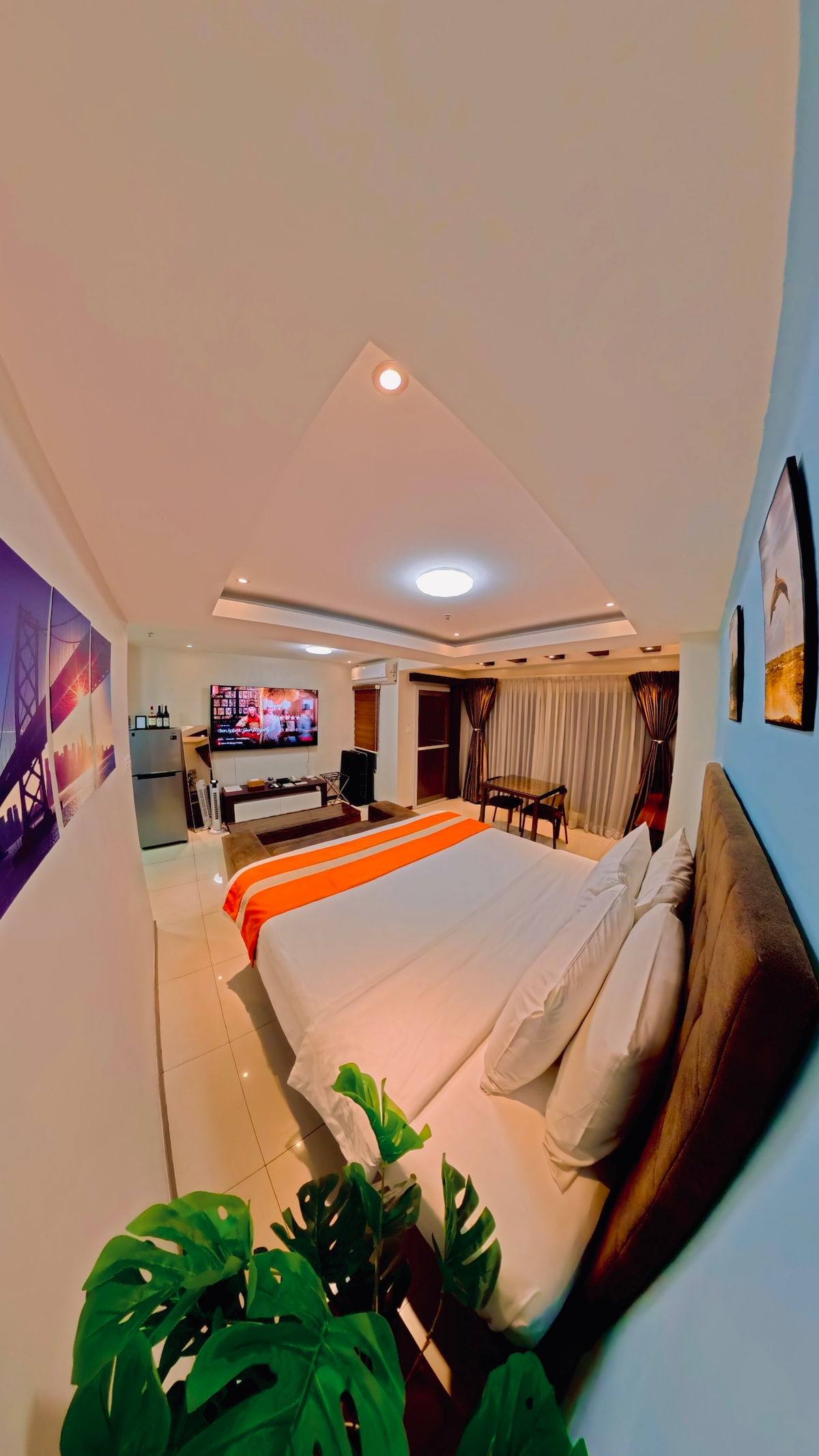This 1-bedroom haven spans over 56 square meters. Situated minutes from Clark International Airport, casinos, golf course, bustling malls, top-notch restaurants, and lively bars. This spot is your gateway to the city’s vibrant entertainment and night life. As you step into this generous living space, you’re greeted by modern ambiances that effortlessly blends comfort and style. Overhead LED mood lighting, 2 TVs offering cable, local channels, & Netflix, to make this haven a home away from home.