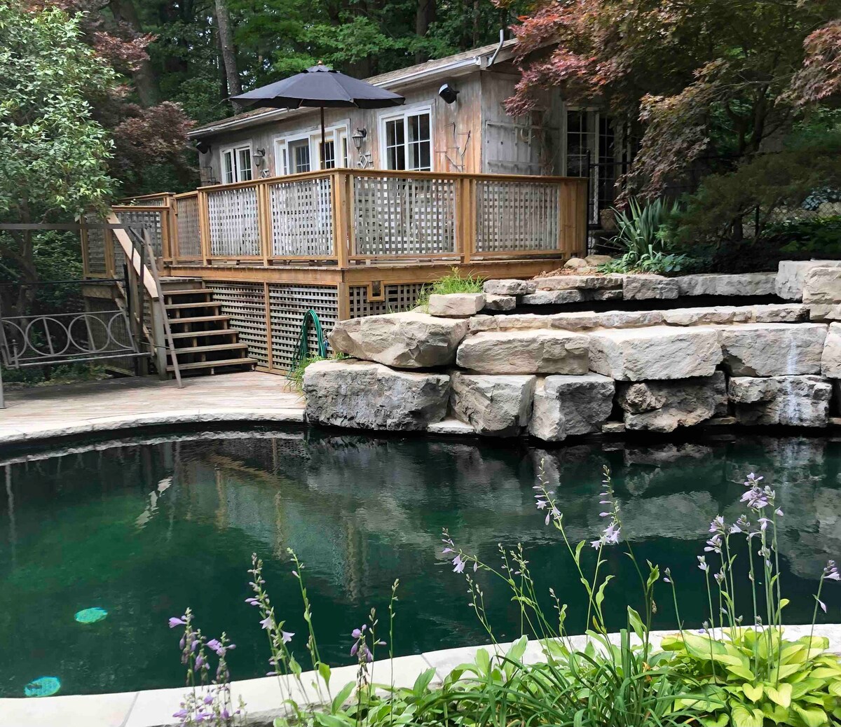 Nestled amidst a canopy of trees with a symphony of song, rests a petite cottage that offers a serene experience. This picturesque oasis is accented by a seasonal pool, private deck, and extensive landscaping adding to the air of tranquility. Whether visiting friends & family, exploring local sites or seeking a cozy little private setting for rest & relaxation, La Petite Rhineland Retreat is an impressive destination.