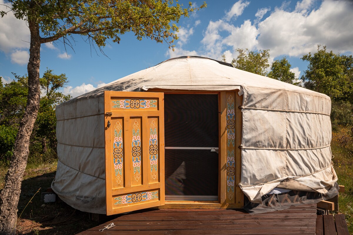 Get away from the hustle and bustle of everyday life, with all the comforts but in the middle of nature. The yurt has its own bathroom, an outdoor kitchen and a shaded terrace with a beautiful view. The comfortable bed can be split into 2 single beds. You have a lot of privacy in your tent. In the evening you can enjoy the amazing starry sky. It is a few minutes walk to the beautiful natural swimming pool, with pure water. And a 25-min drive to the wonderful Alentejo coast with beautiful beaches